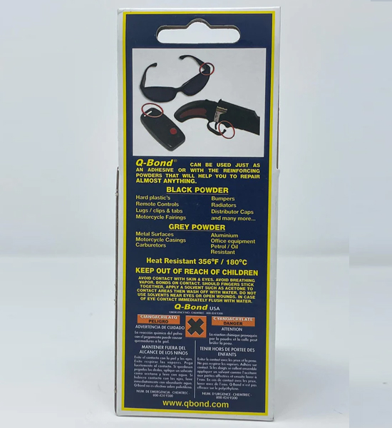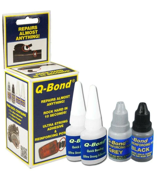 Broken radiators or electrical switch? Is your door handle falling off? Q-Bond ultra strong adhesive can repair just about anything! Use the Q-Bond Bonding Adhesive Kit as a stand-alone adhesive or with the reinforcing powders to fix just about anything you can think of. The Black Powder can repair bumper grilles, radiators, motorcycle fairings, electrical switches, door handles, distributor caps, just to name a few. The Grey Aluminum Powder can be used to repair cracks on engine casings, computer cases, office equipment, cracked plastics, cracked metals, and so much more. The Q-Bond QB2 Adhesive kit is a one-size-fits-all repair glue that is a necessity to any toolkit.